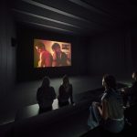 Nell’imponente spazio dell’HangarBicocca, i lavori dell’artista statunitense sono presenze impattanti esposte in piccole strutture nere, avvolte da tende oscuranti dalle quali esce un filo di luce, come quando si entra al cinema.