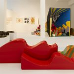 Una seconda sezione dell’esposizione, curata da Mariastella Margozzi e ospitata al piano rialzato del museo, è dedicata al rapporto tra Lazzari e le arti applicate: un campionario che spazia tra collane e accessori, disegni per stoffe e riviste, bozzetti pubblicitari e arazzi, in una proteiforme vertigine di materiali. Ne emerge come la praticità del fare di Lazzari – spesso legata a contingenze di genere o professionali, come alla collaborazione con figure quali Giò Ponti – abbia trovato espressione in ambiti disparati, tutti però raccordati da una precisa visione stilistica e da un sentire teso a riprogrammare, nella sua interezza, l’esperienza estetica della vita quotidiana.