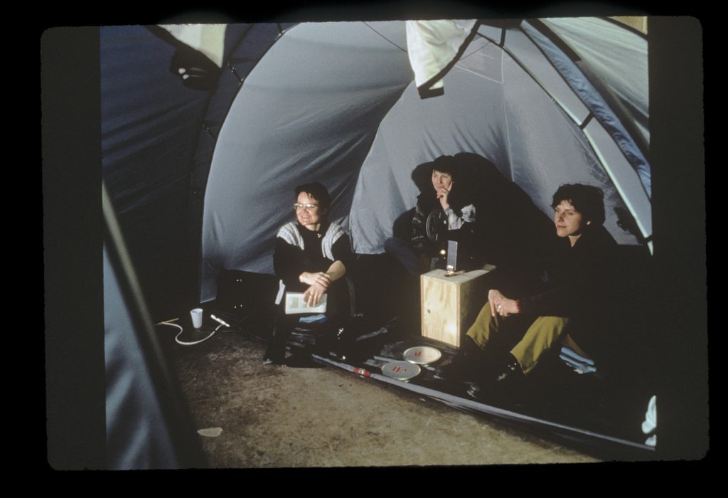 Procedendo nel percorso si incontrano alcune delle tende che ricorrono nell’intera pratica di Tiravanija come archetipo di abitazione minima e porosa. Tra queste, untitled 1992 (cure), una tenda arancione in cui i visitatori possono sedersi e bere il tè (un gesto che nella semplicità disarma qualsiasi possibilità di distanza critica tra opera e spettatore) e untitled 1997 (cinéma de ville, berlin-bangkok), un piccolo cinema nomade composto da due tende da campeggio che proiettano video girati a Berlino e Bangkok negli anni Novanta, due città in cui Tiravanija ha vissuto e che nella sua pratica funzionano come poli opposti di un’identità sempre in transito.