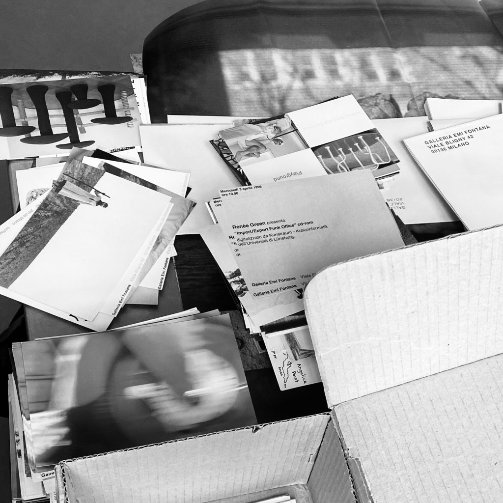Come molti archivi nati a partire dagli anni Novanta, registra infatti quel passaggio epocale tra analogico e digitale, tra lo spazio fisico – e quindi la carta – e le prime forme di rete, così come tra una dimensione locale e un’apertura sempre più globale. In esso convivono perciò materiali assai eterogenei: documentazione relativa alle opere, comunicati stampa, inviti, appunti di allestimento, rassegna stampa, scambi di fax e, progressivamente, email, videocassette, oltre a una consistente quantità di materiale fotografico.
