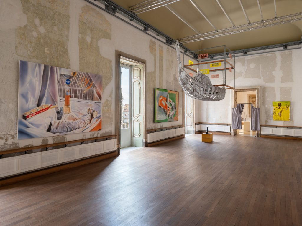 Trasferitosi a Firenze nel 1976 per fare l’attore, Martin Kippenberger vi è rimasto per fare l’artista. L’Italia plasma il suo sguardo ironico e disincantato sul quotidiano: tovaglie a quadri, una gondola veneziana sospesa al soffitto e carica di “pasta”, tranci di pizza margherita “pollocked” popolano gli spazi della galleria napoletana per ricordare la relazione dell’artista tedesco con l’Italia, emblema di quella fascinazione tutta tedesca per la dolce vita.