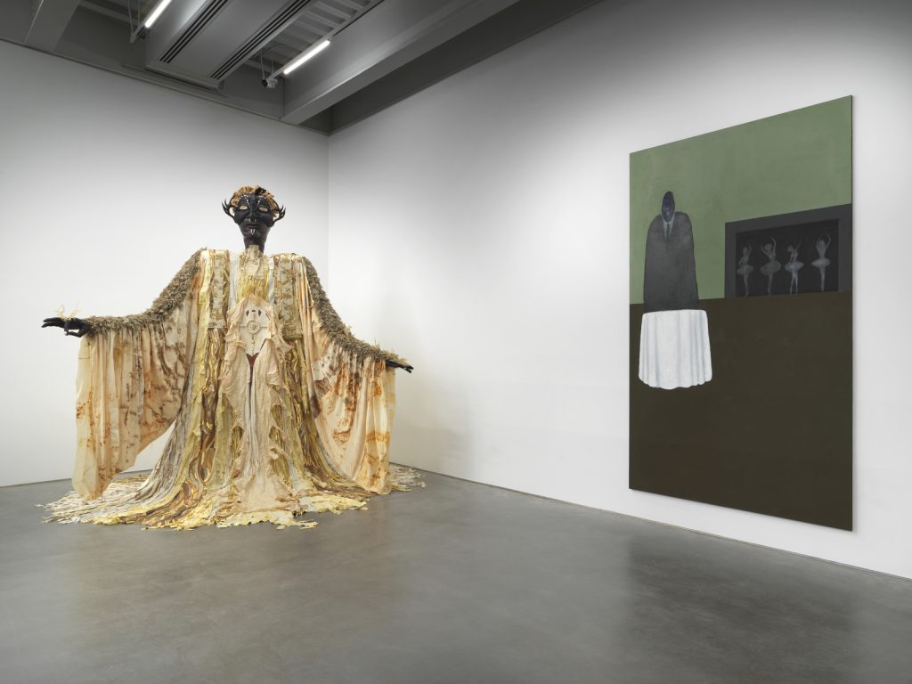 [AG] Forse è proprio questo carico di orrore a spingere alcuni artisti in mostra ad astrarsi dalla realtà: Portia Zvavahera, per esempio, dipinge i propri sogni in grande formato, mentre Toyin Ojih Odutola disegna in maniera dettagliata entità semi-umane provenienti da luoghi remoti. Questa tendenza può anche spiegare l’ultimo settore di “New Humans”: una sezione intitolata Future Cities, non tanto incentrata sui corpi quanto sugli spazi, con artisti come Cui Jie e Constant che prendono l’architettura urbana e la deformano fino a farla apparire aliena. Popolata per lo più da opere grigiastre e prive di humour, Future Cities mi è sembrata l’unica nota stonata della mostra – un passaggio poco convincente all’interno di un’esposizione altrimenti coinvolgente.