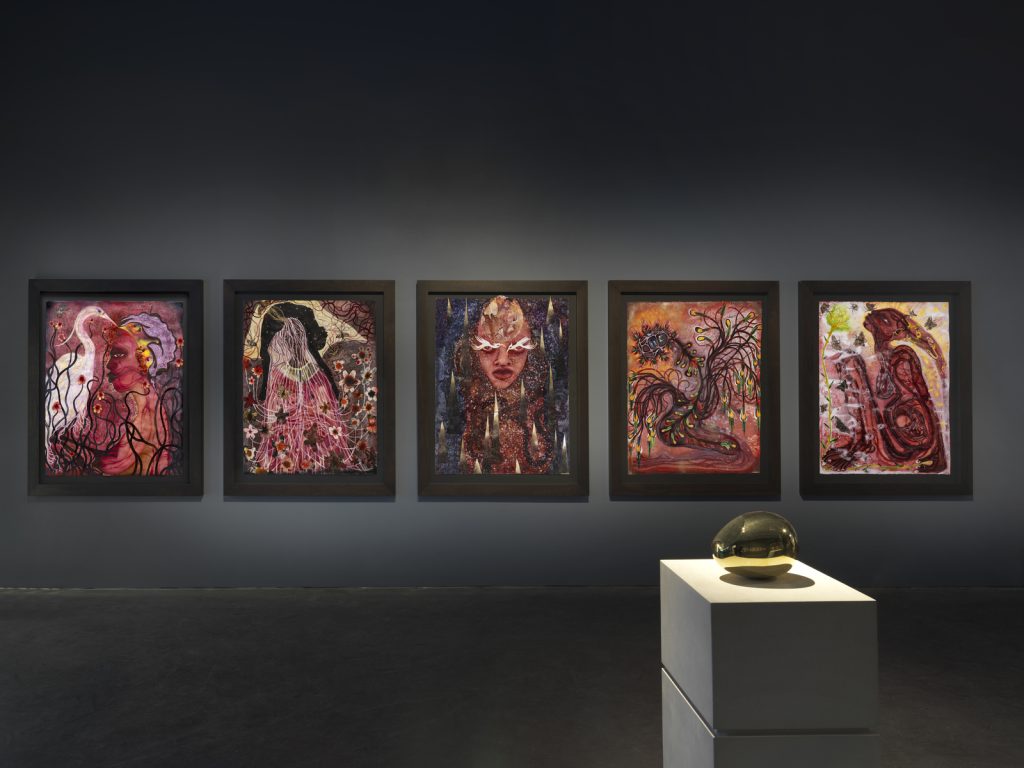 [AG] Questa scelta di mettere a confronto l’arte moderna con quella più recente è oggi molto diffusa nelle biennali internazionali. In effetti, “New Humans” ha un impianto concettuale così complesso che avrebbe potuto sostenere un’intera edizione della Biennale di Venezia o di documenta Kassel. Ma la mostra sembra anche rispondere a queste rassegne, in particolare alla Biennale di Venezia del 2022, che ha saputo mettere in relazione l’interesse contemporaneo per le dimensioni spirituali e per l’assurdo con il surrealismo delle artiste del Novecento. Non a caso, “New Humans” e la Biennale del 2022 – curata da Cecilia Alemani, moglie del direttore artistico del New Museum, Massimiliano Gioni – condividono più di quaranta artisti. Alemani ha dichiarato che la sua Biennale era «radicata nel pensiero postumano». Evidentemente lo è anche “New Humans”.